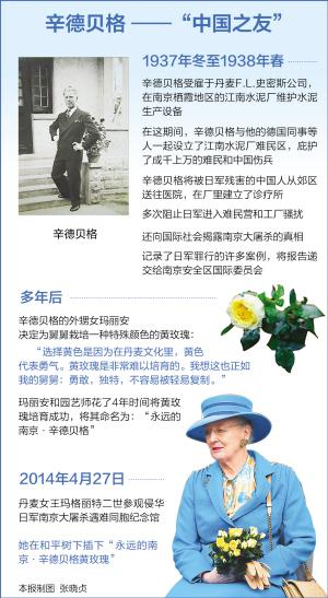 昨日,当年受助于辛德贝格的南京大屠杀幸存者苏国宝,在南京大屠杀遇难同胞纪念馆见到了随同丹麦女王来华的玛丽安。玛丽安是辛德贝格的外甥女,苏国宝终于在77年后有机会向他的救命恩人的亲属表达了感激之情。