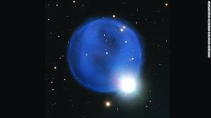 行星状星云Abell 33在这张图片中看起来显然很像一枚戒指,该图是由欧洲南方天文台甚大望远镜拍摄的。这个蓝色泡泡是由一颗衰老的恒星将它的最外层抛入太空形成的,位于前景的一颗恒星恰巧与它组合在一起,形成“钻石订婚戒指”的效果。