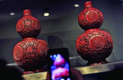 为纪念中法建交50周年,中国艺术珍品展日前在巴黎装饰艺术展览馆开幕。展品是来自法国资深收藏家捐赠的珍品,主要包括中国明、清朝代的家具、服装、漆器、木雕、瓷器、玉器、青铜器、玛瑙制品等。 (新华社发)