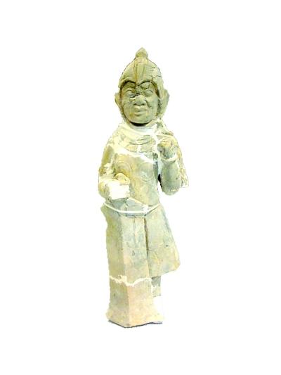 扬州博物馆展出的隋炀帝墓出土文物:彩陶执盾武士俑 本报通讯员 南琼摄