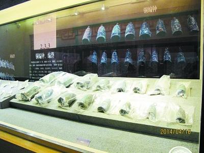 扬州博物馆展出的隋炀帝墓出土文物:铜编钟、编磬 本报通讯员 南琼摄