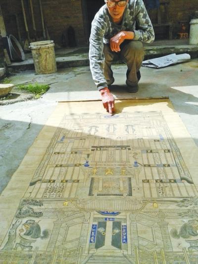 昨日,大河报记者接到热线,洛阳市涧西区尤东村一户农民家中珍藏一清末民初的卷轴。昨日上午,记者前往采访发现,卷轴绘制详细,庭院外景、堂屋内景和用图画的形式“供奉”十五世的祖先,遵循了古代“昭穆制度”。