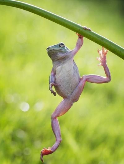 摄影师拍到树蛙“单杠”锻练肌肉照(图)