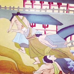 “董磨磨”在微博里发布了几张壁画的局部图片,从图片看,画中描绘的是秦代的历史:有宫廷中舞动的宫女,有服徭役的民工,还有著名的秦兵马俑。而从网上的传播情况来看,这幅壁画的画风超过了多数网友的接受范围,当然也免不了各种各样的“吐槽”。网友“在此地寻此人”说这幅画应该是“新现代派彩画风格”,看了这幅画,他瞬间发现自己也堪称大师了。而网友“丑逼猪扒爱做怪”直言,自己已经无法直视那几张兵马俑的脸了。