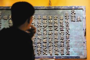 昨日,在钟楼举办的明清圣旨臻品展上,游客正认真欣赏 记者 张宇明 摄