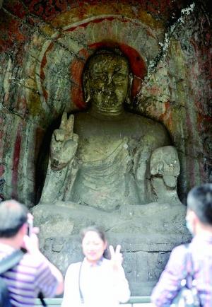 龙门石窟佛像摆“剪刀手” 网友:是二指禅(图)