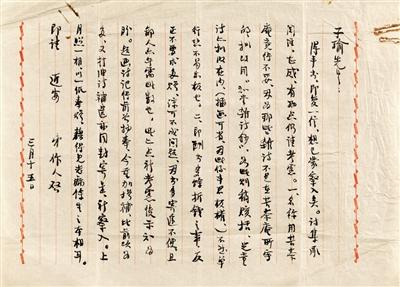 周作人84通信札首上拍场 系学者郑子瑜旧藏(图)