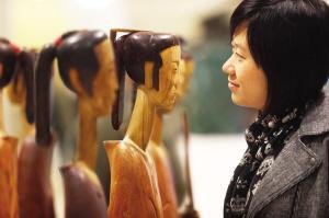 图:市民到大剧院参观田世信雕塑展。