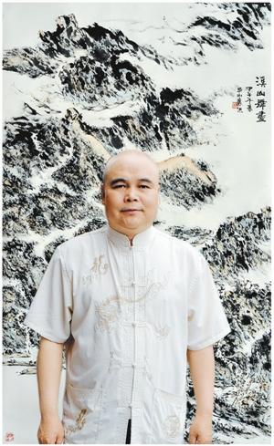 他用的是最“笨”,也是最扎实的方法:临摹。一套十几年前内蒙古人民出版社出版的《中国传世山水画》中有四五百幅作品,每幅作品他都临过十几遍,早就对历代大家的笔墨特点了如指掌。后来,他又瞄准了现代名家,陆俨少、傅抱石、黄宾虹的笔墨功夫他都烂熟于心。慢慢地,他将前人的特点融会贯通,博采众长。他不讳言自己的笔墨间蕴含着前人的影子,比如学习石涛的树,学习陆俨少的水和云,画山则遵循黄宾虹的五笔七墨。两年前,他特意赴中国美院跟随著名画家张捷进修,让自己的艺术能更加精进。