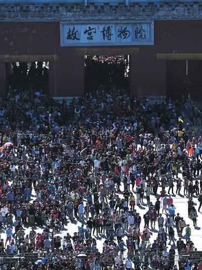 2013年10月2日,故宫迎来国庆假期游览高峰,截至中午11时30分,进院游客已超过8万人。新京报记者 侯少卿 摄