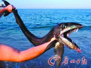 美国海滩现长嘴獠牙怪鱼 工作人员拍照后放生(图)