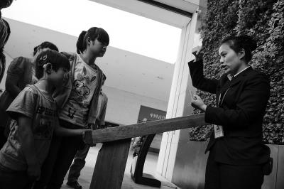 上周四下午3点,笔者来到这里时,发现展厅里一片漆黑。工作人员为笔者挨个打开展厅的灯,“平时来的人不多,一天也就十来个人,多是遛弯儿的居民。”据介绍,为了省电,平时展厅的灯是关着的;一般情况下,团体参观时才会有解说员讲解,“讲解员是兼职做志愿活动,平时都有自己的工作”。
