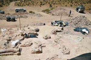 古生物学家说,他们一共发掘出150块骨骼,全部“状态完好”。这些骨骼据信属于7头恐龙。这些恐龙应该是一个新种雷龙。依据骨骼化石周围的岩石来判断,它们生活在白垩纪晚期。