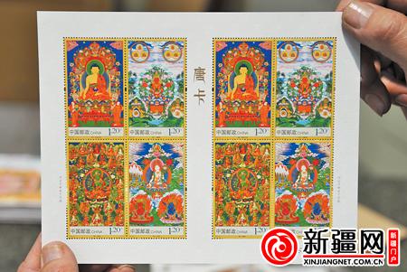 当日,中国邮政发行《唐卡》特种邮票1套4枚,小型张1枚,全套邮票面值为10.80元。该套邮票表现内容分别为“释迦牟尼佛”、“无量寿佛”、“绿度母”、“白度母”,小型张表现内容为“千手千眼观世音菩萨”,均为故宫博物院珍藏品。(本报记者寇凝摄影报道)
