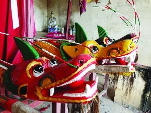 “龙头在举行完龙舟仪式之后,会专门供奉起来,平日里也会有村民到龙王庙烧香祈福。”村长胡金平告诉记者,龙头、龙尾都是竞渡前才装上船头的,这三艘老龙舟的龙头都是用整木雕成,分别染成红色、黄色、和黑色,对应着三艘不同颜色的龙舟。“木料开料、放样、雕刻、成型、打磨、上色……一样都不能少。”