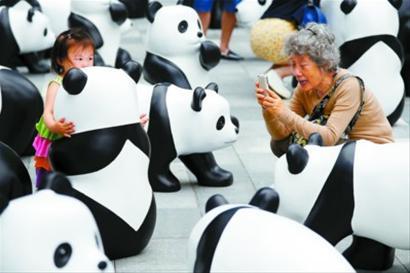 上海展出百只"大熊猫" 毛竹角料制成宣扬环保(图)