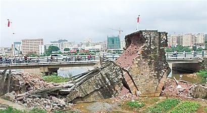 广东清代古桥被开发商用2台挖掘机偷拆(图)