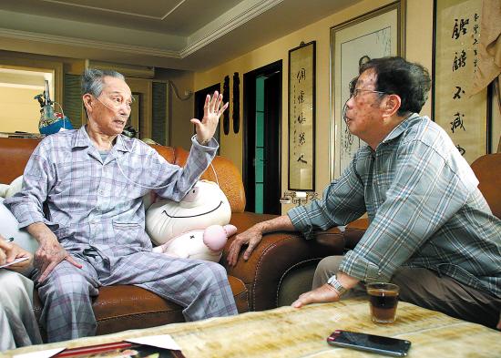陈列东向“虾哥”汇报着粤剧院的各项动态:新剧《风云2003》的首演,该戏以钟南山为原型,叙说了11年前那场非典战役;《梦·红船》的台前幕后如何打造好戏;谁演着什么角色……“虾哥”一边听,一边点头,慢慢说了一句:“(剧院)远啊!”但在众人一再要求他去看看新剧场劝说下,和善的“虾哥”又答应,身体情况允许的话,就回剧院看新剧和排演。