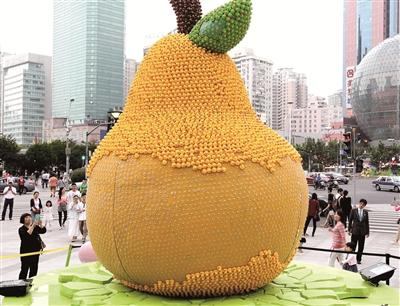 记者获悉,这个“鸭梨”本是港汇广场内一家店铺做的宣传活动。一万五千只小黄鸭吸附在“鸭梨”表面,形成一个独特的作品。记者昨日看到,“鸭梨”底部的小黄鸭已所剩无几。