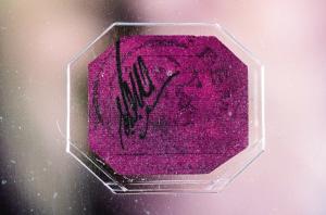 据报道,“圭亚那洋红色1分”邮票是世界十大珍贵邮票之一,传世仅一枚。这枚邮票是英属圭亚那1856年发行的,面值1分,底色洋红,黑色图案,而且被人剪去了四个角,四角形变成了八角形,是一张“残疾”的珍贵邮票,由英国小学生波恩发现的,其历史和出身在邮票界广为流传而且无人不晓。它虽然本身并无突出之处,却成为“世界邮票大王”王冠上的宝石,特别是被当时的“邮王”费拉里收藏而名声大噪。