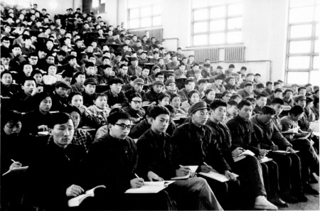 参与互动(0)恢复高考后,清华大学首届大学生——77级学生在课堂上认真听课。