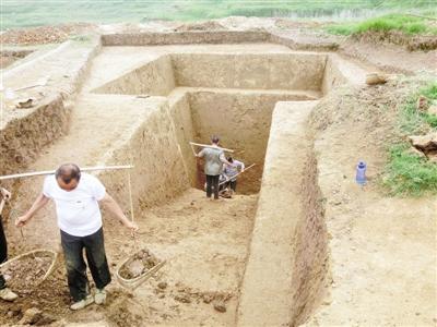 “这座墓葬地势低洼,周围田地不断往里浸水,土质含水多且较松软,4月初的时候,这块地方还被江水所淹没,直到4月中旬水才退下去。”负责这座战国古墓发掘工作的区博物馆工作人员刘江说,这座墓葬发掘是从5月1日开始动工的,雨天多,给发掘工作带来不少困扰。