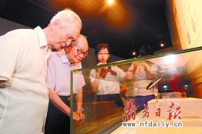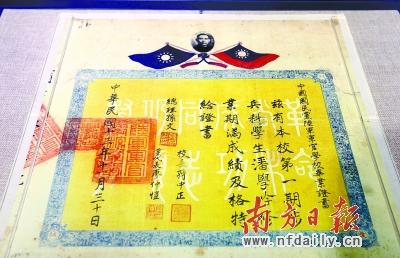 观展时,熟悉的文物让黄埔老兵忆起当年。小图为黄埔军校第一期学生潘学吟的毕业证书。南方日报记者 李细华 摄