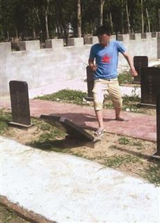 河北少年踢倒烈士墓碑引热议 墓碑已进行修复(图)