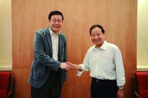 任鸣(左)接任张和平(右)当上北京人艺新一任院长。 李春光/摄