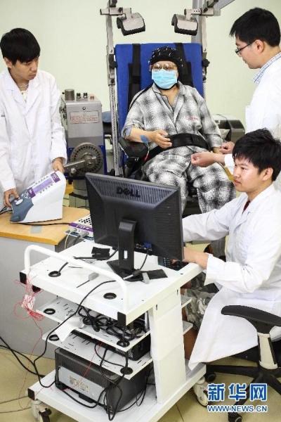 发布会现场,一位偏瘫病人通过这一系统能够“指挥”自己原本无法动作的肢体完成相应动作。项目负责人说,系统需要首先提取体验者的脑电数据,随后通过脑电的异步“脑-机接口”技术模拟中枢神经通路,解码体验者的运动意念信息,进而驱动多级神经肌肉电刺激技术模拟周边神经通路,刺激瘫痪肢体产生对应动作。