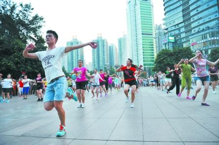 毕刚称,现在跟着他跳舞的总共有100多人,最大60多岁,最小的10多岁,“重庆的坝坝舞也可以舞出健康,动感和时尚。”