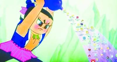 流传较广的一张“葫芦娃桌面”是会喷水的五娃吐出一道水柱,网友们在“水柱”上任意排列着自己常用的电脑图标,营造出桌面图标由五娃口中喷出的效果。类似的还有七娃举起葫芦的图片,桌面图标仿佛从葫芦口中“倾巢而出”,而二娃千里眼射出的光芒中,也满含桌面图标。