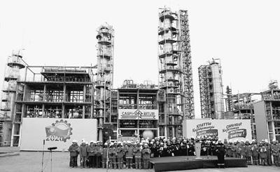 中国去年提出共建丝绸之路经济带倡议,激起了丝绸之路沿途国家更大的合作热情。图为中国和哈萨克斯坦最大的非资源领域投资项目——阿克套沥青厂开工仪式现场。