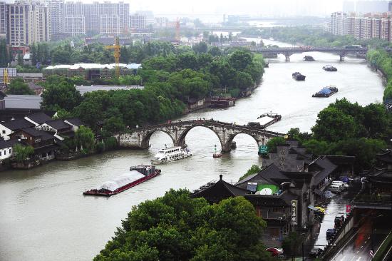 这是京杭大运河杭州终点标志——拱宸桥 新华社发