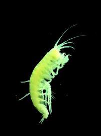 赵力自己拍摄的一组图片显示,洞穴沟虾体长仅一厘米左右,与人们常见的虾外形差异很大。这种虾没有扇形的尾巴和长长的触角,身体里没有色素,几乎透明,甚至连眼睛也没有,看起来宛如科幻电影里的外星生物。赵力描述:它们不像绝大多数水生动物那样背向上游动,而是横躺在洞穴水洼里移动的。考察发现,它们的食物是水里的蝙蝠粪便,只要有粪便落入水中,它们就一拥而上抢食。不过,这种沟虾只能存活在洞穴中,带出洞的样本在阳光下一个小时左右就会死亡。