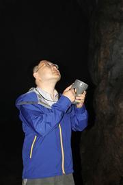 另外一种洞穴生物尺蛾虽然有眼睛,但是对光并不敏感。它们停在洞壁上,强光手电筒照射它时,毫无反应,伸手就能捉到,不会躲避。它的幼虫在洞内到处爬行,寻找蝙蝠粪便。虽然洞内蝙蝠很多,但是由于这种蛾子不飞行,平时只是安静地潜伏在洞壁,蝙蝠根本无法发现。“这种生存方式,天敌蝙蝠反而成了它们的食物提供者。”赵力说。