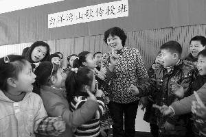 “啥个花开节节高?啥个花开像双刀?啥个花开来青草里?啥个花开来头向东?芝麻开花节节高,延延豆开花像双刀,南瓜开花来青草里,向日葵开花来头向东。”在金阊新城实验小学里,顾凤珍阿婆正教孩子们唱着四句头山歌。