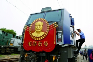 “毛泽东号”机车诞生于1946年10月30日。在东北解放区哈尔滨到满洲里铁路上有一台报废机车。哈尔滨机务段的工人们,连续抢修27个昼夜,使这台报废车“满血复活”了。这台神奇的机车被命名为“毛泽东号”机车。