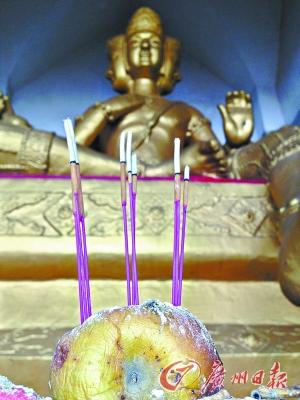 本来是小区内一处模仿泰式园林的风水景观,竟然吸引了一批善男信女前来烧香拜佛,有人甚至将自家佛像、神台搬到此地,隔三差五点起烟火,滚滚浓烟令附近居民苦不堪言。广州市白云区增槎路的一处小区的业主为此不胜其扰。