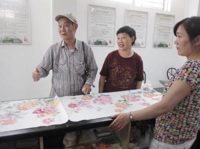 漕河社区居民李良虎、赵素云夫妇都是书画爱好者,他们历时3年,画出2500朵国色天香的牡丹,欲献礼扬州建城2500周年。昨天,画作刚完工,老两口不顾天热,带着作品赶到社区,让社区人员先睹为快。116张宣纸组成的巨幅牡丹图,雍容华贵,看到者无不交口称赞。