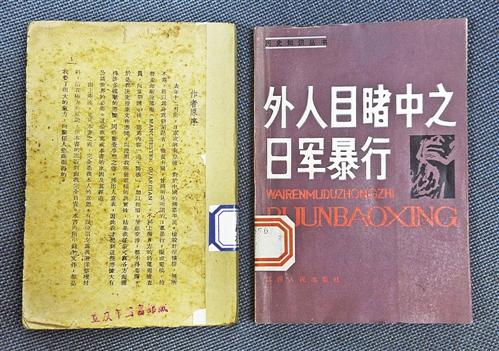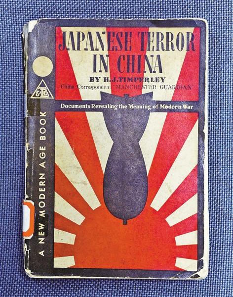 由原英国《曼彻斯特卫报》(现《卫报》)驻中国记者H·J田伯烈于1938年所编著的《日军在中国的暴行》的英文原版书封面。 本组图片均由记者熊明摄