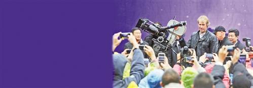 《变形金刚4》导演迈克尔·贝在武隆开机仪式上与中国观众和粉丝见面。记者 崔力 摄