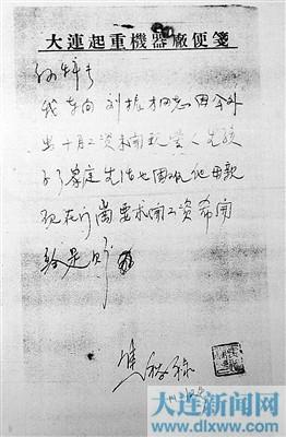 这是一张焦裕禄手写的大连起重机器厂便笺复印件,原件被河南兰考县的焦裕禄同志纪念馆收藏,内容为:“孙科长:我车间刘振才同志因公外出,十月工资未开,现爱人生孩子了,家庭生活也困难,他母亲现在门岗要求开工资,希开给是盼。”落款为“焦裕禄”,时间为11月12号,上面还加盖了焦裕禄印章。一张小小的便笺,焦裕禄对职工的关怀之情跃然纸上。
