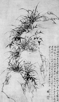 郑燮曾说,“兰花本是山中草,还向山中种此花”。他笔下的兰竹都是生在山石之间,使其回归天性,顺应自然。这件作品以石为脉,把一丛丛分散的兰竹有机地统贯一气,疏密得当,既严整而又有变化。浓墨绘兰竹,淡笔勾山石,有清高拔俗、自然天成的趣味。