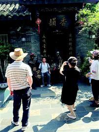 记者注意到,大部分游客都十分理解,宽窄巷子的“铜人”生意依然火爆。