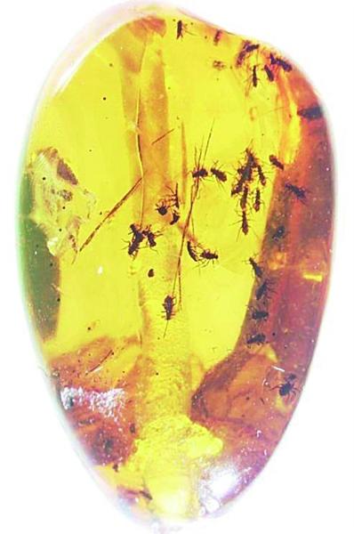 此外还发现了蟋蟀、蜘蛛和蟑螂的幼虫、臭虫等。而其中最为特别的要算装着“捻翅目”的琥珀。据介绍,“捻翅目”是最神秘的外寄生性昆虫,个体大小仅2毫米,肉眼几乎看不见,借助几百倍的显微镜,才可以看出它们的“真身”。“目前在琥珀里面,只有波罗的海琥珀有少量。目前,全世界仅发现10块左右。”王博介绍说,捻翅目的后代和甲壳虫比较接近。