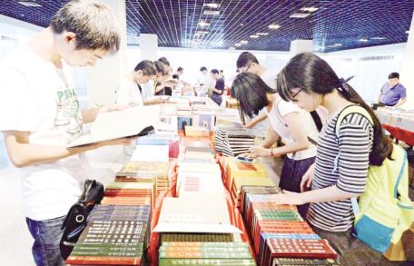 7月17日~21日“2014年台湾原版图书展”在位于杭州的浙江图书馆开展,此次书展展出台湾近年出版的精品书籍4000多种,涵盖文学、哲学、教育、艺术等领域。图为读者在浙江图书馆翻阅展出的台湾原版书籍。