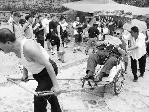 贝大师在北京的大师课期间,抽空去了一趟慕田峪长城。那天一早,北京晨报记者跟着贝大师一行去看长城音乐节,同去的还有田浩江夫妇和旅美的上海女高音李秀英。长城脚下游人如织,大家仰望着山上的长城,很替年过八旬、体重超过200斤的贝大师担心。田浩江很快找来一辆漂亮的老式人力车,车夫是个壮汉,他请贝大师坐上车掂量了一下,又叫来两个哥们儿,跟田浩江谈好价钱,然后两个人拉车两个人推车,一路浩浩荡荡上山去耶!特别招摇。贝大师恐怕是有生以来第一次享受这个待遇,乐得笑开了花。