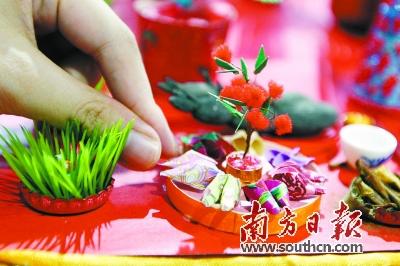 黄埔区横沙村罗氏宗祠的巧婆罗莲英是此次贡案的主要制作人之一,据介绍,所有的作品都是在昔日巧姐的回忆之下,经过大家的想象做出来的,做到了尽量贴近事实。