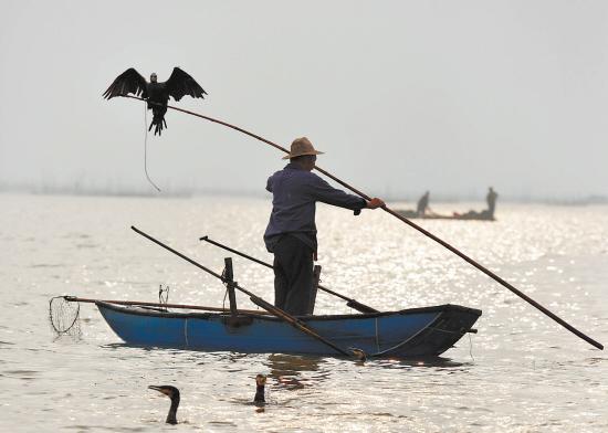 鸬鹚捕鱼技艺濒临失传 白马湖仅几位老年渔民坚守